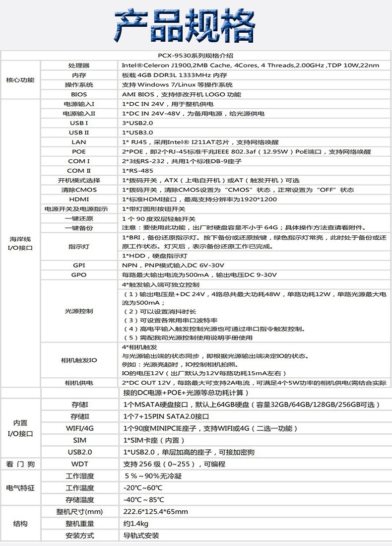 | 核心功能 | 處理器 | Intel?Celeron?J1900,2MB,Cache,4Cores,4Threads,2.00GHz,TDP10W,22nm |