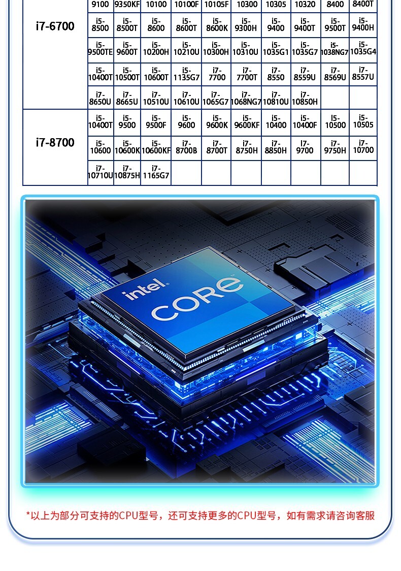 1. Intel Kabylake/Skylake Core I3/I5/I7 FCLGA1151系列第6/7/8/9代CPU
